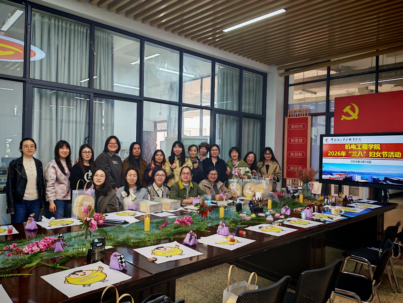 3月18日下午,机电工程学院在明尚楼A201举办庆祝“三八”国际妇女节主题活动,全院女教师在轻松愉悦的氛围中共度美好时光。