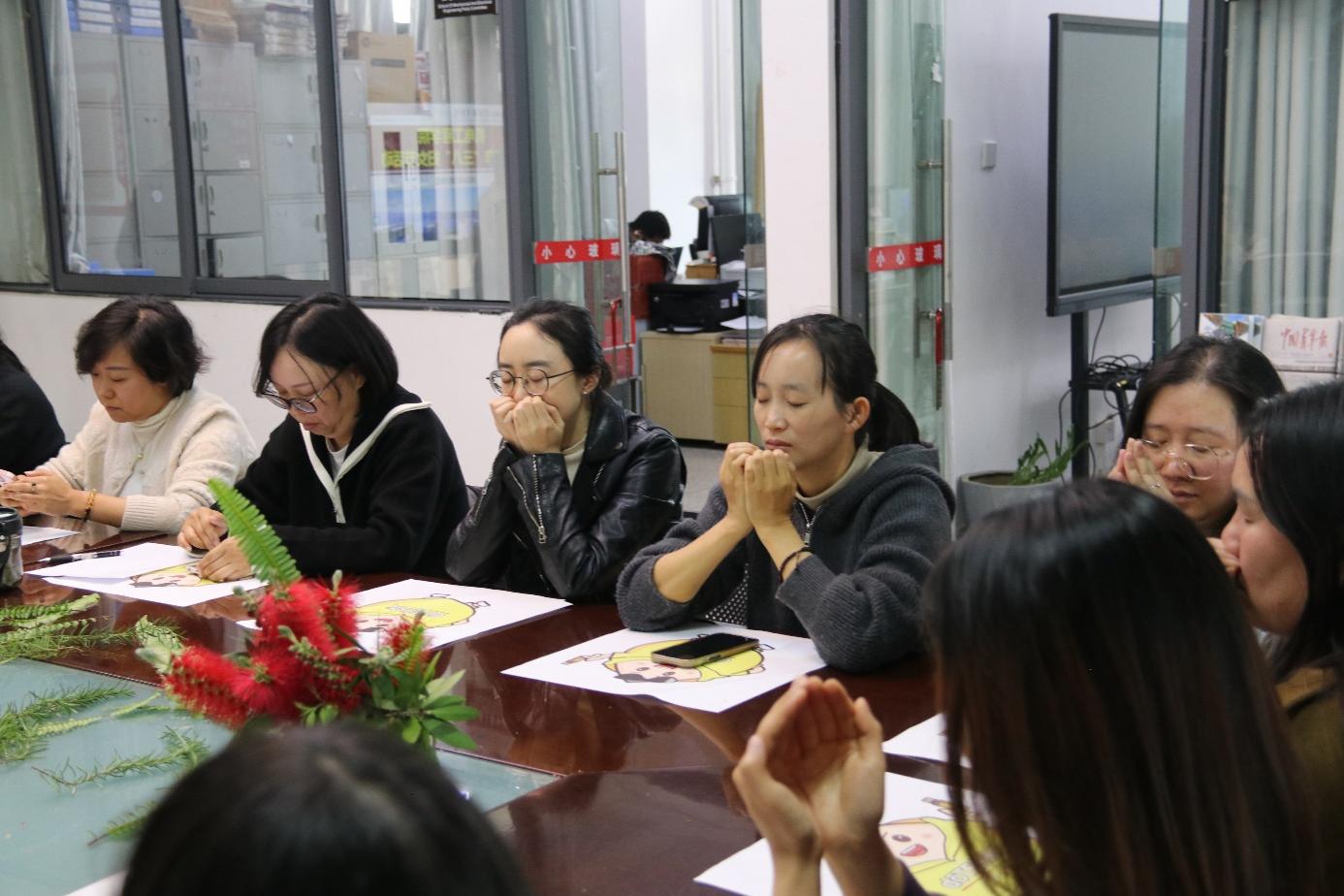 活动在舒缓的音乐中开启冥想放松环节。老师们闭目凝神,通过深呼吸和正念引导,暂时卸下繁忙的教学科研压力,感受久违的宁静与平和。