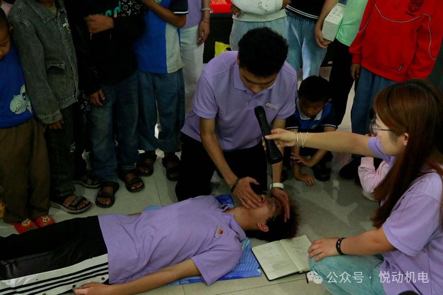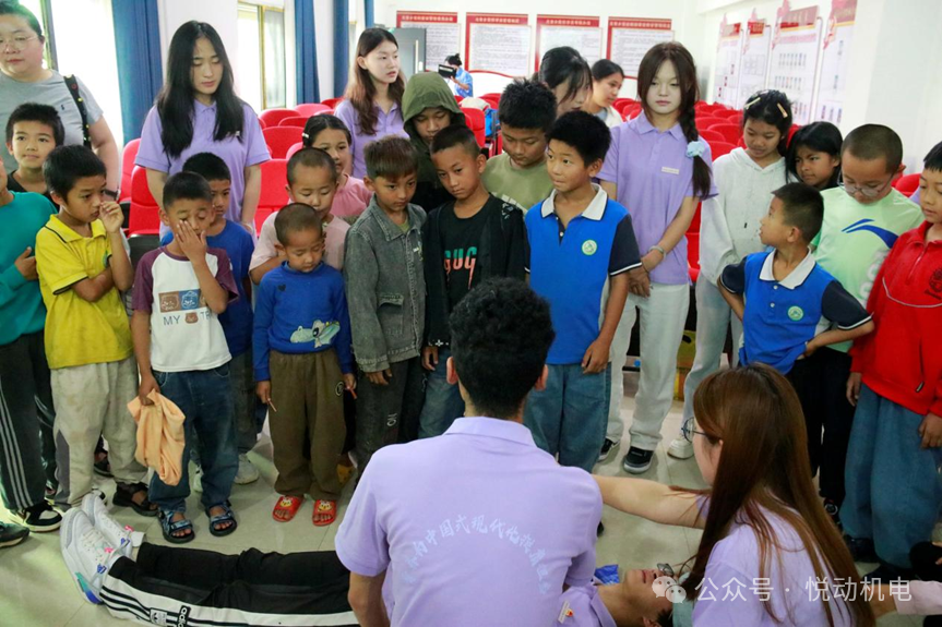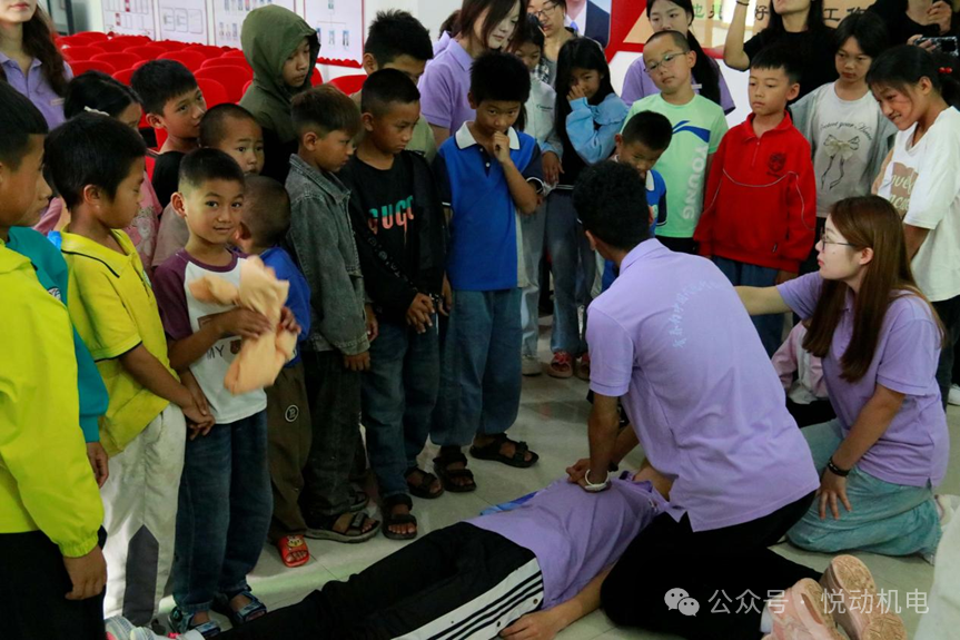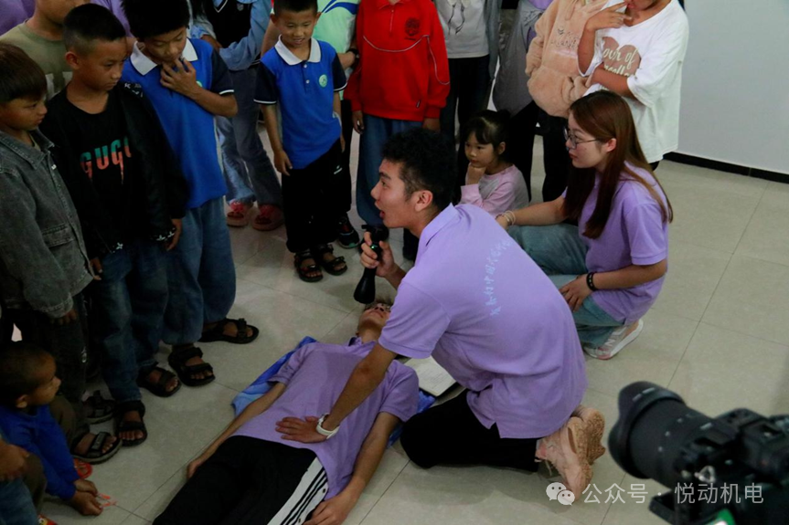 活动以实用科普拉开序幕。机电工程学院建筑消防技术专业志愿者讲解消防安全知识,现场示范心肺复苏操作,从按压位置到力度节奏,手把手指导孩子们练习,帮助他们掌握基础急救技能。