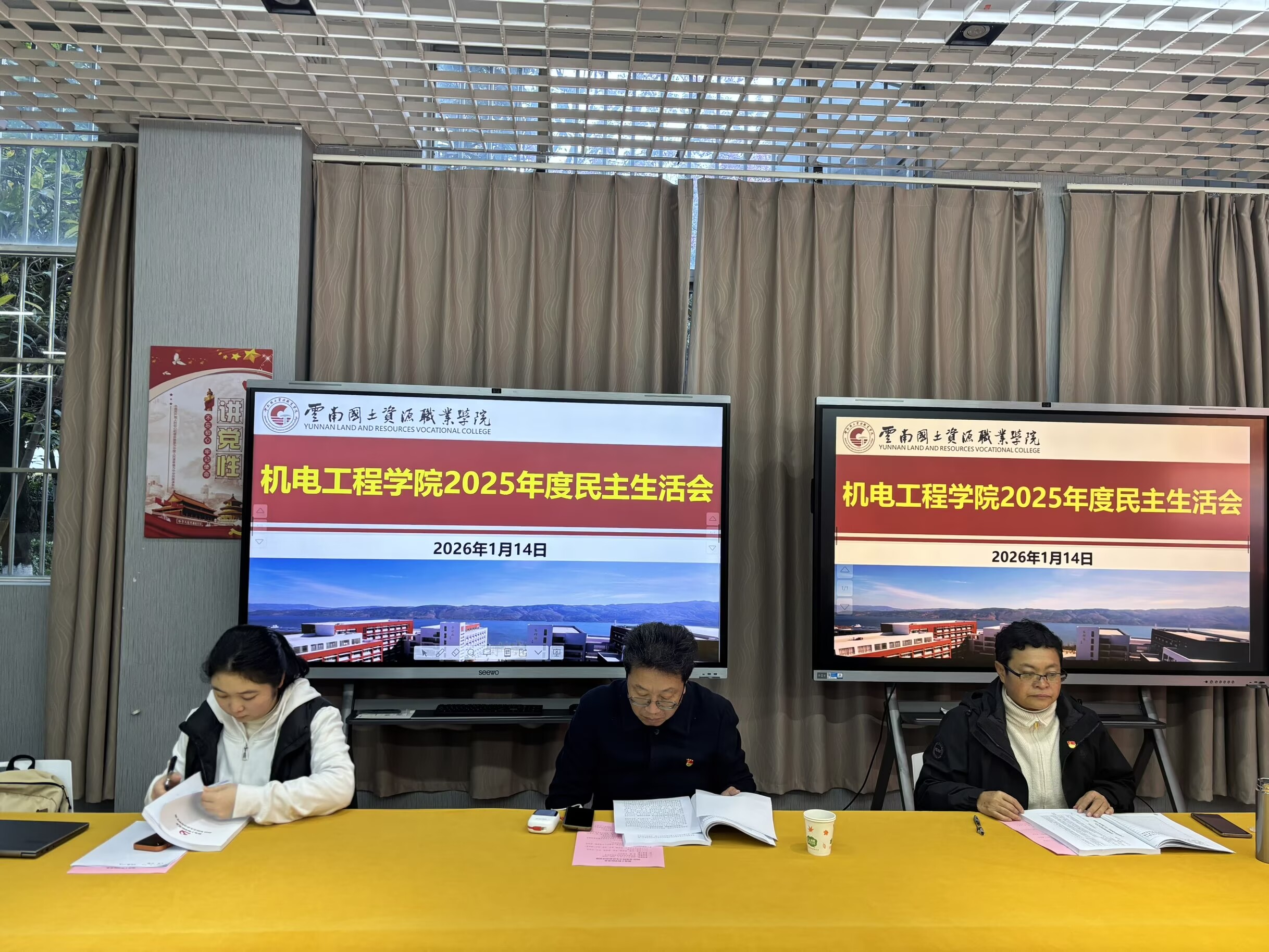1月14日上午,按照《中共云南国土资源职业学院委员会关于印发〈二级党委(党总支)领导班子2025年度民主生活会方案〉的通知》安排部署,机电工程学院党委在经开校区会议室召开2025年度专题民主生活会。会议由机电工程学院党委书记张颖同志主持,学院全体党委委员参加。学校党委第五督导组组长齐武福副校长,督导组成员方荣和陆兰三位同志到会指导。