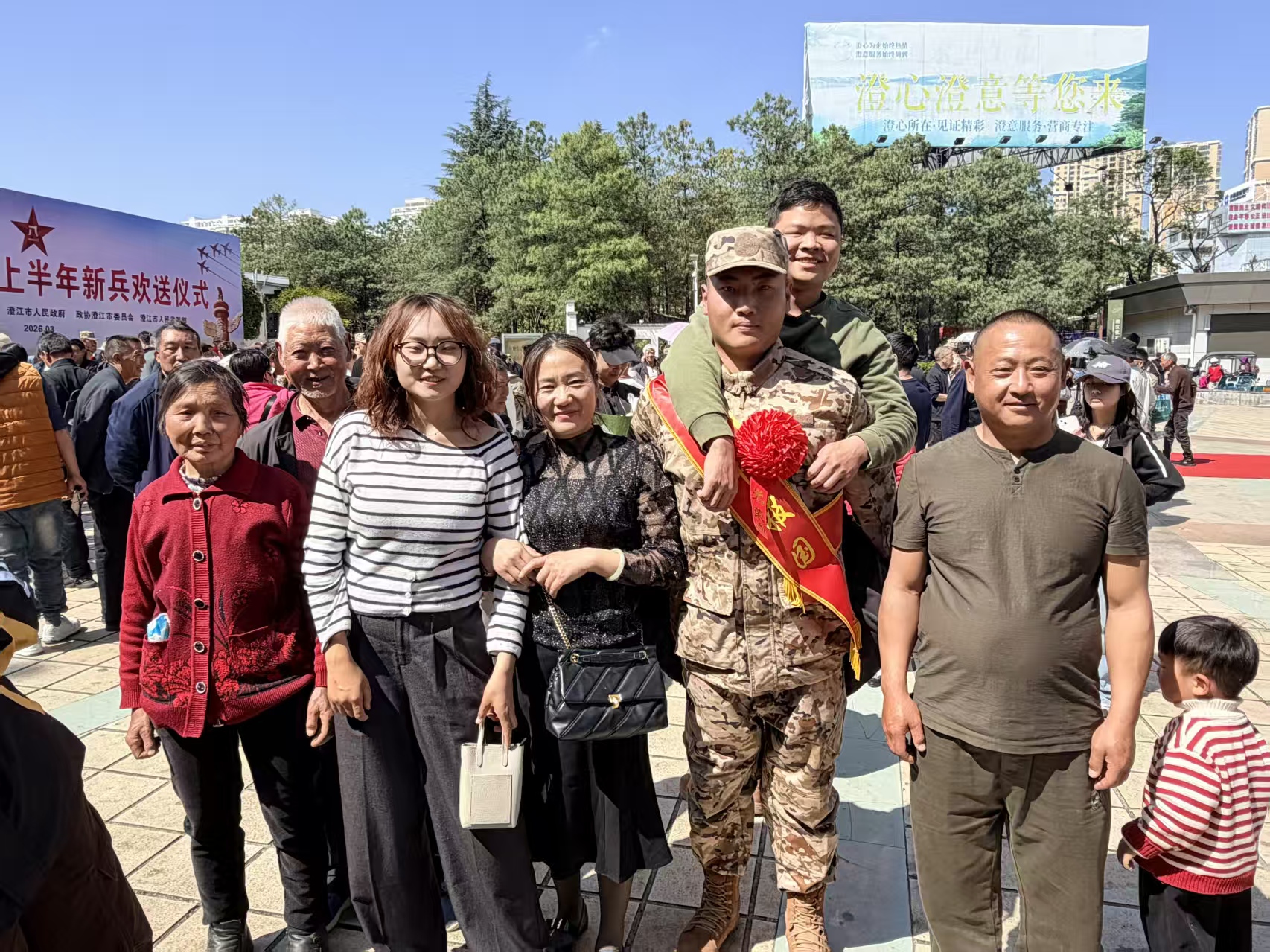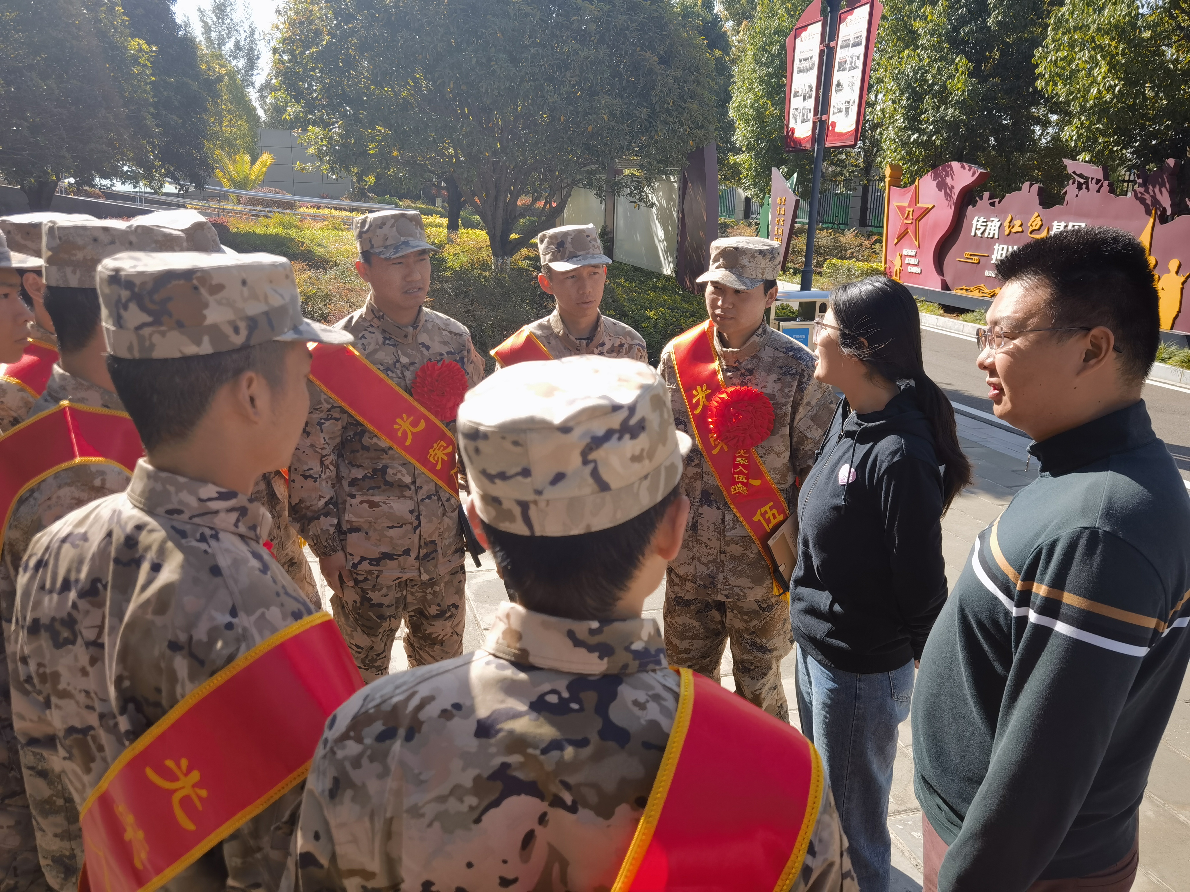 送兵现场,两位老师向即将奔赴军营的学子们赠送了学院精心准备的纪念品,并与他们一一握手交谈。老师们转达了全院师生的诚挚祝贺,表示学院始终是每一位学子的坚强后盾,将持续关注大家在部队的成长。他们勉励同学们迅速完成角色转变,在训练中刻苦磨砺,牢记“明德尚能,学以致用”的校训,早日在部队建功立业,为国防事业贡献力量。